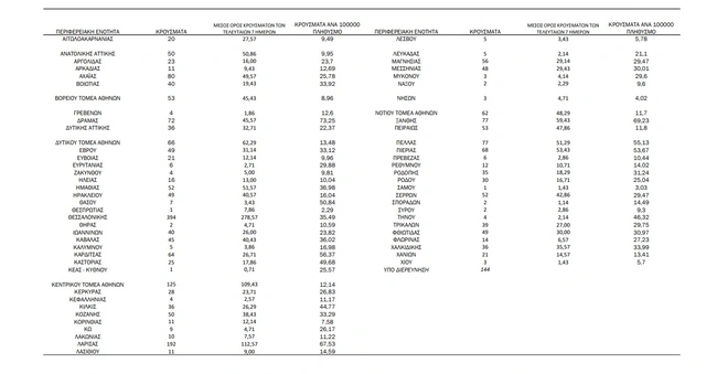 Αναλυτικά η κατανομή των κρουσμάτων σε όλη την Ελλάδα: