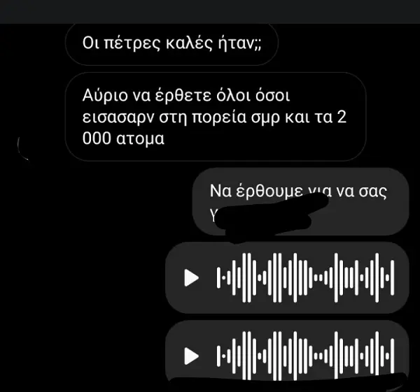 Σύμφωνα με το voria.gr, ο κ. Τσιαούσης έδωσε στη δημοσιότητα συνομιλίες από το Viber και σχόλια από αναρτήσεις σε Facebook και Instagram που σύμφωνα με τον ίδιο προέρχονται από άτομα που επιτέθηκαν σε μέλη της ΚΝΕ και συμμετείχαν στα επεισόδια που έλαβαν χώρα σε ΕΠΑΛ της Θεσσαλονίκης. Συγκεκριμένα, στιγμιότυπα οθόνης από συνομιλίες στο Instagram, σε απάντηση ιστορίας φέρεται να λένε «σήμερα θα έχετε θάνατο», ενώ αντίστοιχες συνομιλίες σε ομαδικές στο Viber, τα άτομα φέρεται να καλούν σε συγκέντρωση λίγη ώρα πριν το συλλαλητήριο στην πλατεία Τερψιθέας την Τετάρτη με σκοπό να επιτεθούν στους διαδηλωτές, σύμφωνα πάντα με τα στοιχεία που δημοσιοποίησαν τα σωματεία. Χαρακτηριστικά, αναφέρουν «σήμερα 17:30 φασαρία στη Σταυρούπολη».