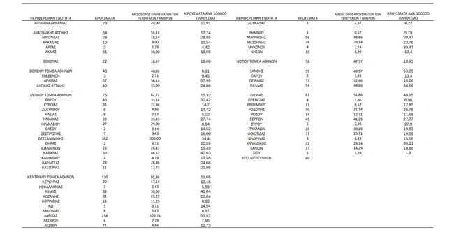 Αναλυτικά η κατανομή των κρουσμάτων σε όλη την Ελλάδα: