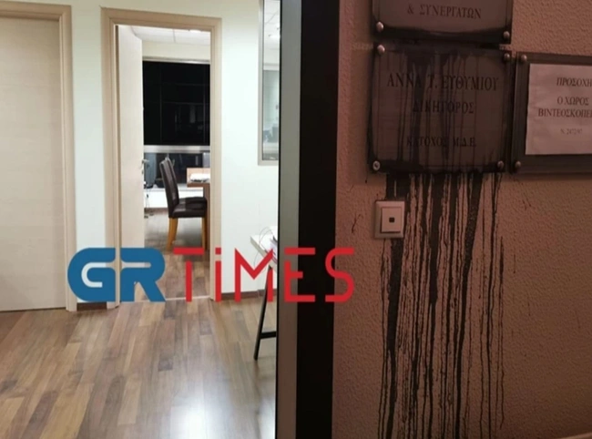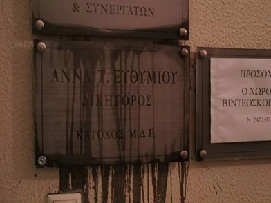 Στο στόχαστρο αγνώστων μπήκε, το απόγευμα της Παρασκευής, το δικηγορικό γραφείο της βουλευτού Α' Θεσσαλονίκης της Νέας Δημοκρατίας, Άννας Ευθυμίου. Οι άγνωστοι μπήκαν στο κτίριο που βρίσκεται στο κέντρο της πόλης και έριξαν μαύρες μπογιές στην πινακίδα που αναγράφει το όνομα και την επαγγελματική ιδιότητα της κ. Ευθυμίου. Στη συνέχεια αποχώρησαν χωρίς να δημιουργηθούν περαιτέρω προβλήματα.