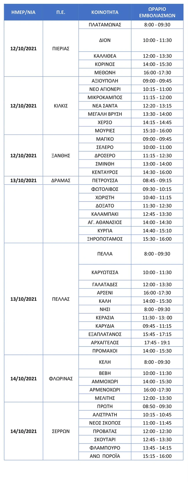 Στο πλαίσιο της προσπάθειας αυτής ανακοινώθηκε το πρόγραμμα εμβολιασμών από τις Κινητές Μονάδες σε χωριά της Βόρειας Ελλάδας: