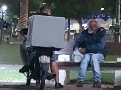 Όλα διαδραματίστηκαν το βράδυ της Τετάρτης (6/10), στα Ψηλά Αλώνια. Πάνω στην πλατεία βρισκόταν ένας ηλικιωμένος άστεγος που καθόταν μόνος του σε ένα παγκάκι. Τότε ένας διανομέας με το μηχανάκι της δουλειάς του, τον πλησίασε και του άφησε μία σακούλα με φαγητό. Οι φωτογραφίες με τον διανομέα να δίνει μια σακούλα με φαγητό στον άστεγο άνδρα έκαναν το γύρο του Διαδικτύου.