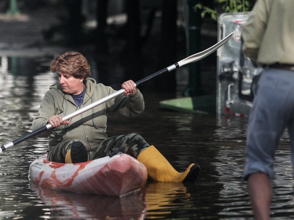 Στον Κολωνό μια γυναίκα προσπαθεί να φτάσει στη δουλειά της με κανό λόγω της κακοκαιρίας «Μπάλλος». Οι εικόνες με τη γυναίκα που κάνει κανό στους πλημμυρισμένους δρόμους του Κολωνού έχουν γίνει viral. Η κυρία Θεανώ διατηρεί επιχείρηση στην περιοχή. Όπως αναφέρει, το κατάστημα καταστράφηκε από τις πλημμύρες που προκάλεσε η δυνατή βροχή. Το νερό μέσα στην επιχείρησή της έφτασε το μισό μέτρο. «Έχει καταστραφεί η επιχείρησή μου, έχουν καταστραφεί σπίτια και άλλες επιχειρήσεις και θέλουμε εδώ και τώρα, άμεση λύση», λέει η γυναίκα στην κάμερα του Alpha.