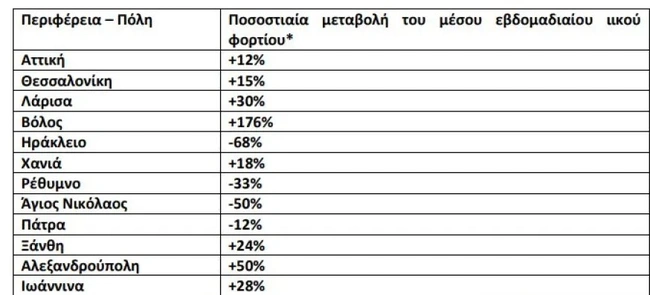 Στον αντίποδα, πτωτικές τάσεις στο μέσο εβδομαδιαίο ιικό φορτίο των αστικών λυμάτων παρατηρήθηκαν στο Ρέθυμνο (-33%), στον Αγιο Νικόλαο (-50%) και στο Ηράκλειο (-68%), ενώ οριακή μείωση παρατηρήθηκε στην Πάτρα (-12%).