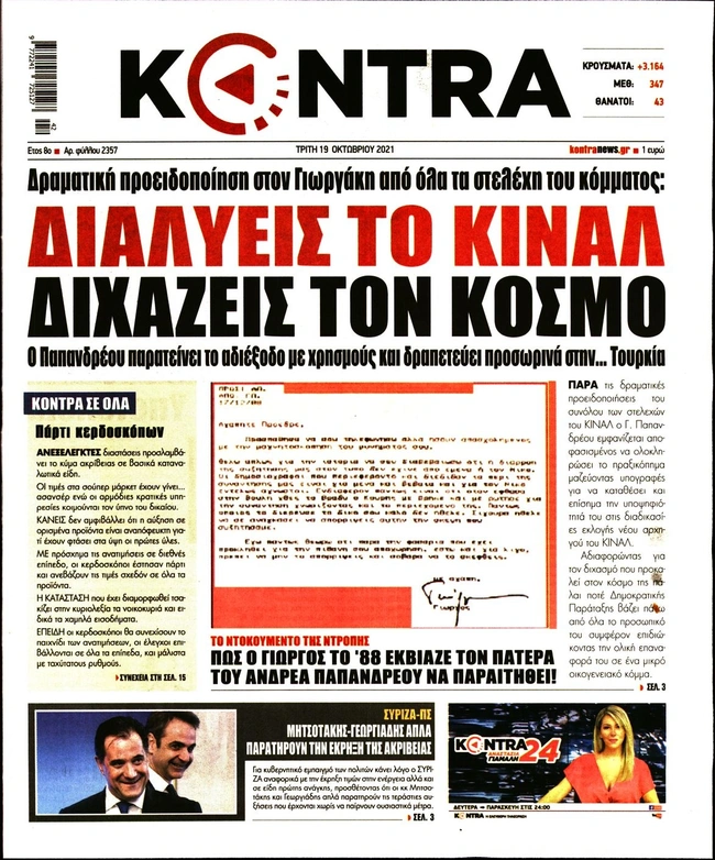 Τα πρωτοσέλιδα της Τετάρτης 20/10