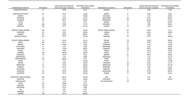 Tα κρούσματα στις περιφερειακές ενότητες που ανήκουν στην Αττική: