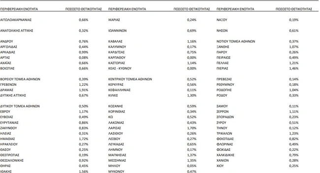Οι περιοχές με τα υψηλότερα ποσοστά θετικότητας: