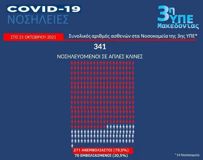 Ενδεικτικά τις επίπτωσης του εμβολιασμού είναι τα στοιχεία από τα νοσοκομεία της 3ης και 4ης Υ.Πε.: