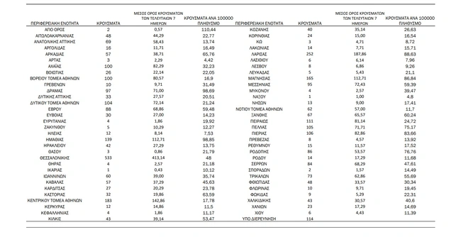 Tα κρούσματα στις περιφερειακές ενότητες που ανήκουν στην Αττική: