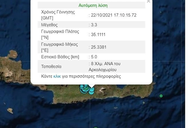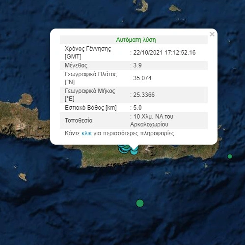Σειρά σεισμικών δονήσεων αναστάτωσε την τελευταία ώρα την Ανατολική Κρήτη. Μέσα σε δέκα λεπτά, καταγράφηκαν τρεις σεισμικές δονήσεις 3,3 και αμέσως μετά 3,9 και 3,1 βαθμών της κλίμακας Ρίχτερ.