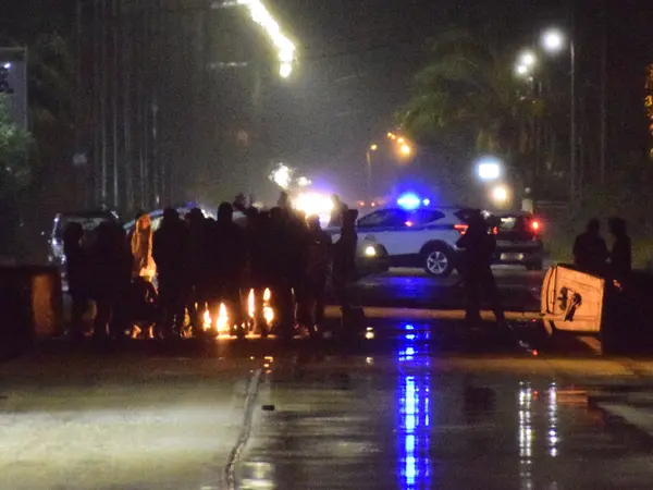 Σύμφωνα με πληροφορίες οι συμμετέχοντες στην διαμαρτυρία, καίνε λάστιχα και πετάνε αντικείμενα, με τη δύναμη της Αστυνομίας να τους επιτηρεί.