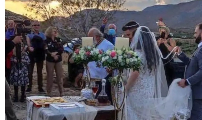 Επίσημοι και καλεσμένοι, φόρεσαν τα καλά τους, οι νεόνυμφοι έβαλαν νυφικό και γαμπριάτικο κοστούμι αντίστοιχα και παντρεύτηκαν με φόντο τα χαλάσματα της εκκλησίας. Μάλιστα, την είδηση για τον γάμο σχολίασε στο λογαριασμό του στα μέσα κοινωνικής δικτύωσης και ο Διευθυντής του Γεωδυναμικού Ινστιτούτου, Άκης Τσελέντης ο οποίος έγραψε: