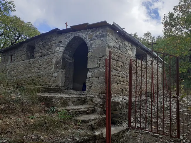«Ο 10χρονος τότε Απόστολος Νάτσης, κατέβαινε από το βουνό όπου βρίσκονταν μαζί με άλλους συγχωριανούς για να πάρει λίγο αλεύρι και σκεπάσματα από το σπίτι. Ένας Ιταλός στρατιώτης, μπαίνοντας στο χωριό τον συνάντησε και του είπε. “Εκεί, στην μικρή εκκλησία έχετε έναν νεκρό δικό σας”. Το αγόρι γύρισε πίσω και τον βρήκε. Μαζί με την μητέρα του τον έθαψαν στο χαράκωμα. Στο σημείο βρίσκεται ένα μικρό προσκυνητάρι. Όλοι ανάβουν ακόμη και σήμερα εκεί, ένα κεράκι στη μνήμη του».