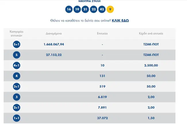 Στην κλήρωση Τζόκερ σήμερα Τρίτη 26 Οκτωβρίου 2021 (αριθμός κλήρωσης 2356), οι τυχεροί αριθμοί είναι: 22, 19, 16, 21, 42 και τζόκερ ο αριθμός 9.