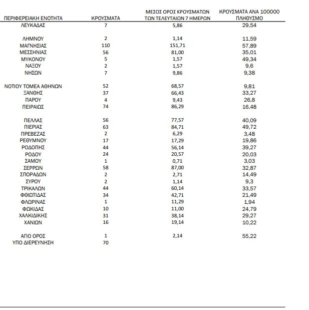 Αναλυτικά τα κρούσματα σε όλη τη χώρα