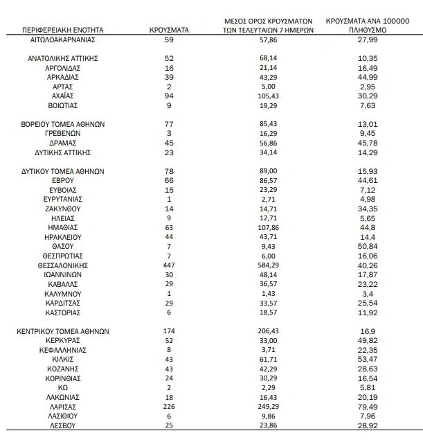 Αναλυτικά τα κρούσματα σε όλη τη χώρα