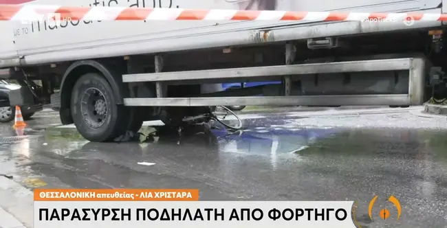 Μάχη για να κρατηθεί στη ζωή δίνει μια κατά πληροφορίες ανήλικη ποδηλάτισσα, που παρασύρθηκε από φορτηγό στο κέντρο της Θεσσαλονίκης. Σύμφωνα με τα τηλεοπτικά ρεπορτάζ η ποδηλάτισσα που φορούσε κράνος, βρέθηκε κάτω από τις ρόδες του βαρέως τύπου οχήματος κάτω από αδιευκρίνιστες συνθήκες, ενώ οι εικόνες από το συμβάν είναι σοκαριστικές.