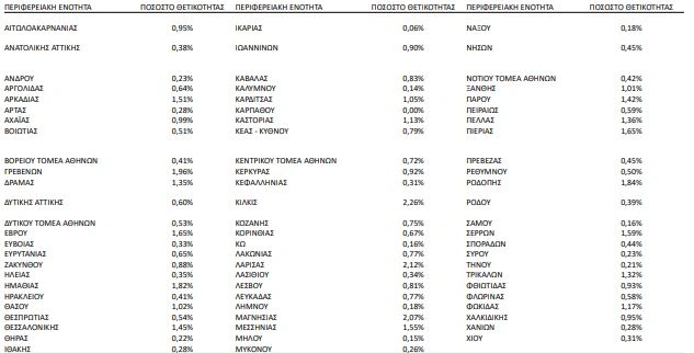 Οι περιοχές με θετικότητα πάνω από 1%: