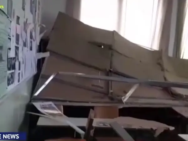 Η γυψοσανίδα με τη μόνωση και τον αλουμινένιο σκελετό είχαν τοποθετηθεί πρόσφατα στο συγκεκριμένο τμήμα από ιδιωτικό συνεργείο, που έδωσε στη συνέχεια το πράσινο φως στη διεύθυνση του σχολείου για να ξεκινήσουν τα μαθήματα.