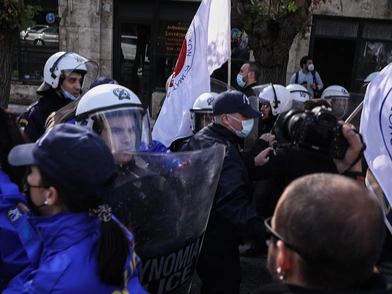Ένταση μικρής έκτασης σημειώθηκε έξω από τη Βουλή ανάμεσα σε καταστηματάρχες και εργαζόμενους στην εστίαση που απεργούν σήμερα και τις αστυνομικές δυνάμεις που δεν τους επέτρεψαν να περάσουν προς τη Βασιλίσσης Σοφίας. Εν τέλει η πορεία των απεργών κατευθύνθηκε προς το υπουργείο Εργασίας.