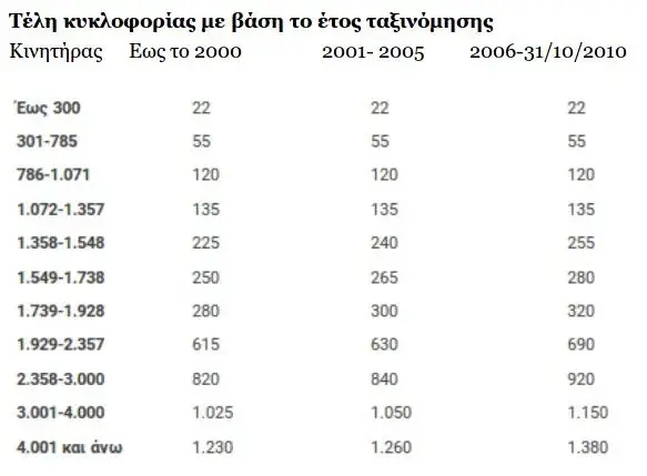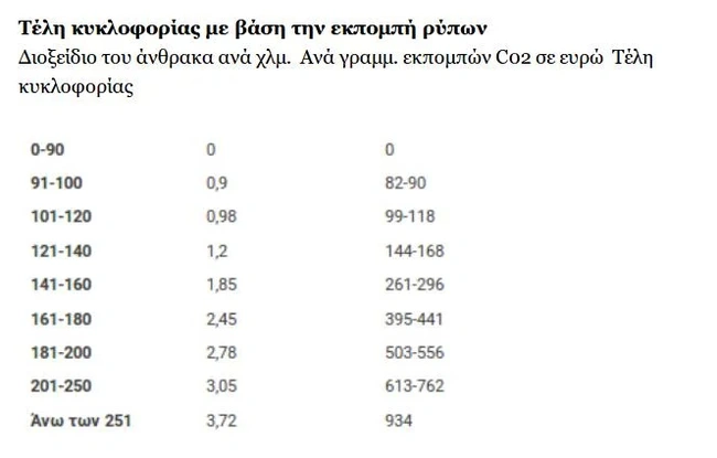 - μηδενικό αν τα τέλη κυκλοφορίας είναι λιγότερα από 30 ευρώ.