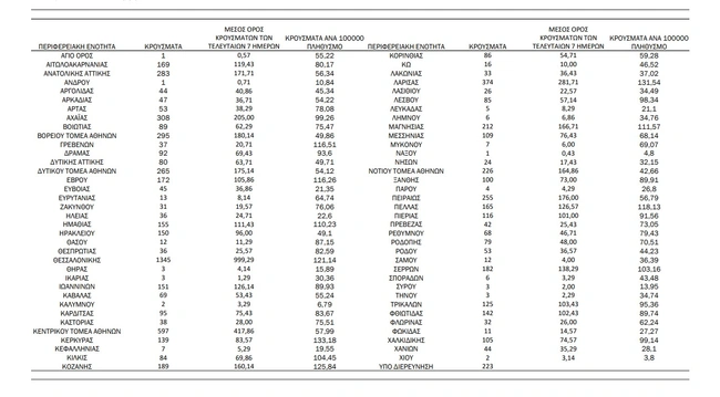 - Κεντρικός τομέας Αθηνών: 597 κρούσματα
