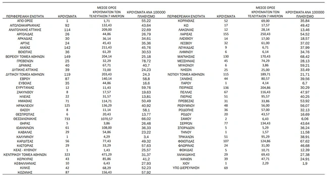Αναλυτικότερα τα κρούσματα στις περιφερειακές ενότητες που ανήκουν στην Αττική: