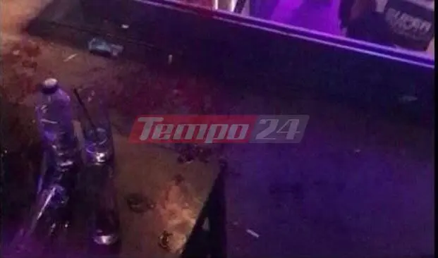 Μάλιστα, όπως φαίνεται και σε φωτογραφία που κυκλοφορεί στο Instagram και αποκαλύπτει το tempo24.news, το σημείο της επίθεσης γέμισε με αίματα και σπασμένα ποτήρια.