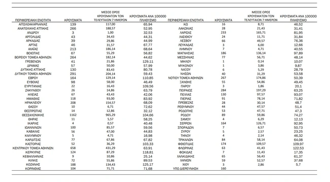 - Κεντρικός τομέας Αθηνών: 658 κρούσματα