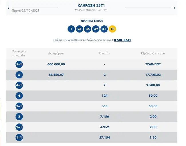 Σήμερα, Πέμπτη 2 Δεκεμβρίου 2021, στην κλήρωση 2371 Τζόκερ του ΟΠΑΠ, θα μοιραστούν στους τυχερούς της πρώτης κατηγορίας 600.000 ευρώ.
