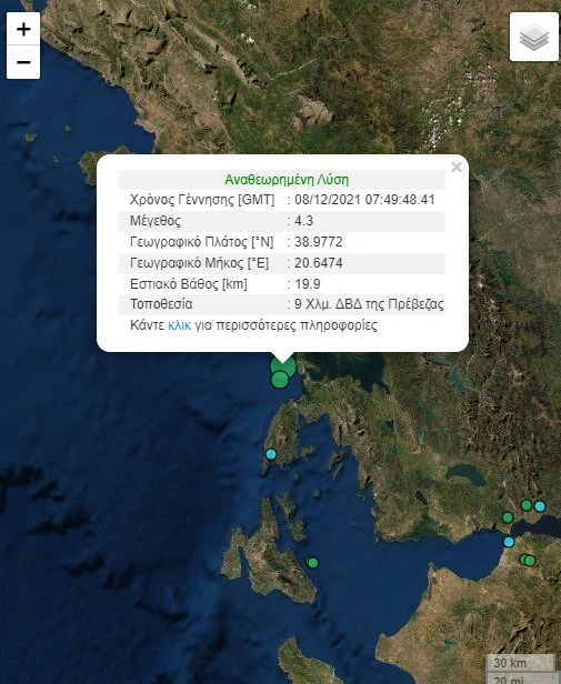 Σύμφωνα με το Γεωδυναμικό Ινστιτούτο Αθηνών, ο σεισμός ήταν μεγέθους 4,3 βαθμών της κλίμακας Ρίχτερ και το επίκεντρό του εντοπίζεται 9 χιλιόμετρα βορειοδυτικά της Πρέβεζας. Το εστιακό βάθος του σεισμού ήταν σχεδόν 20 χιλιόμετρα.