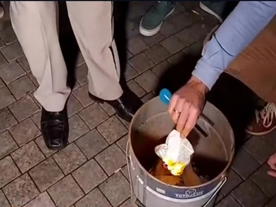 Μαζί με τα αντίτυπα του βιβλίου, οι αρνητές έκαψαν και φωτοαντίγραφα του Νόμου 4682/2020 περί των μέτρων περιορισμού του κορονοϊού, μάσκες και rapid test.