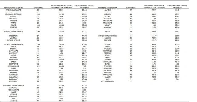 Αναλυτικά η κατανομή στις περιφερειακές ενότητες της Ελλάδος: