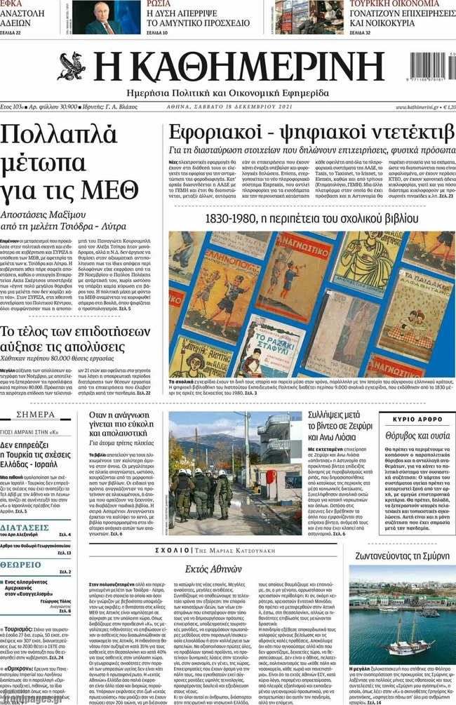 Τα πρωτοσέλιδα των ελληνικών εφημερίδων για σήμερα Παρασκευή 17 Δεκεμβρίου. Δείτε τι φιλοξενεί στην πρώτη του σελίδα ο πολιτικός και οικονομικός Τύπος και τα θέματα της επικαιρότητας που ξεχωρίζουν.