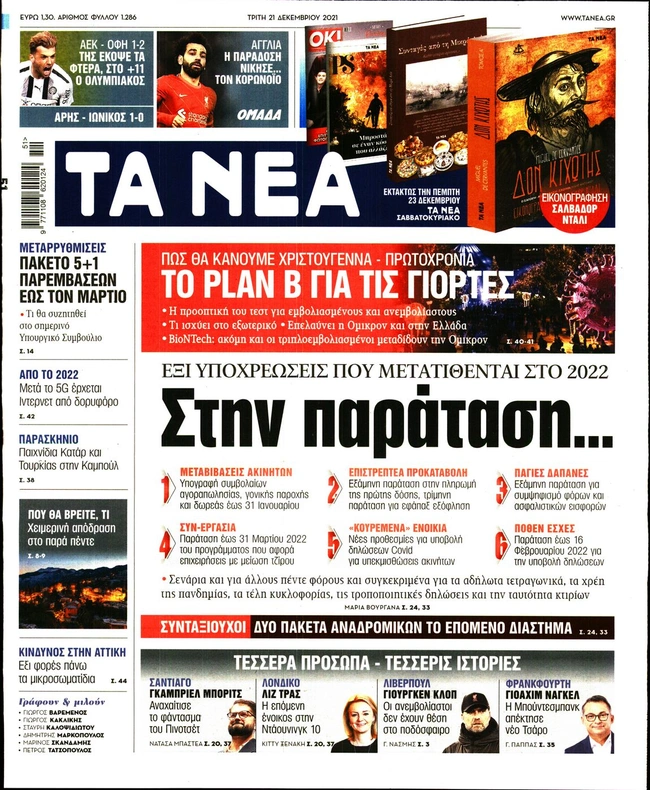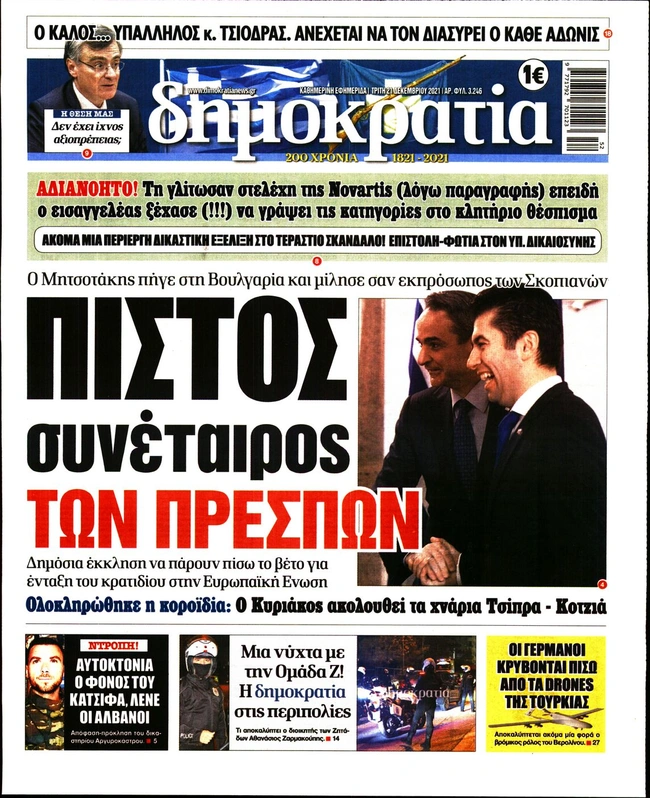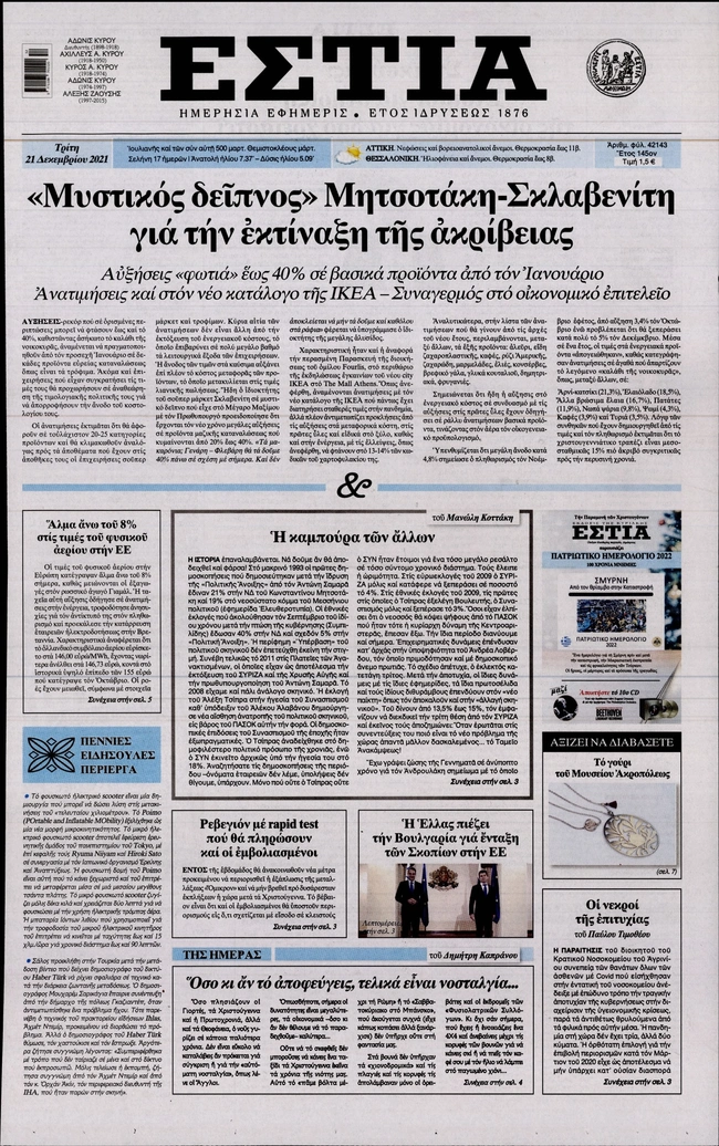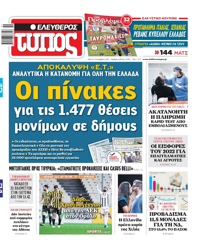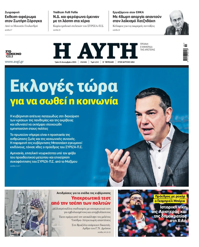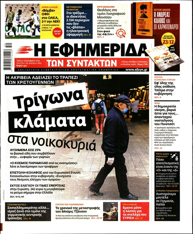 Πρωτοσέλιδα εφημερίδων 21/12