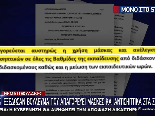 Το βούλευμα αναφέρει ότι βάσει του άρθρου 120 του συντάγματος, το οποίο προκύπτει από τα πρακτικά του «α' μονομελούς ανώτατου τριαδικού δικαστηρίου του έθνους των Ελλήνων», «απαγορεύεται αυστηρώς η χρήση μάσκας και ανέλεγκτων αντισηπτικών σε όλες τις βαθμίδες εκπαίδευσης από διδάσκοντες και διδασκόμενους καθώς και η μείωση των εκπαιδευτικών ωρών»!