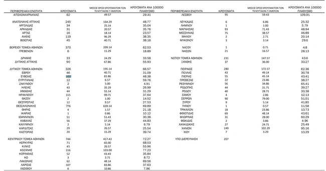 - Κεντρικός τομέας Αθηνών: 744 κρούσματα