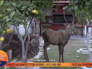 Ελάφι εγκλωβίστηκε για πολλές ώρες σε αυλή σπιτιού στο Μενίδι. Το ελάφι κατέβηκε από την χιονισμένη Πάρνηθα στην περιοχή και πήδηξε τα κάγκελα.