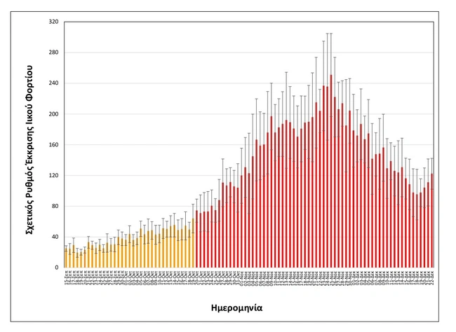 - Οριακά σταθερή (+16%) σε σχέση με τη μέση τιμή των δύο αμέσως προηγούμενων μετρήσεων της Κυριακής 19/12 και της Δευτέρας 20/12.
