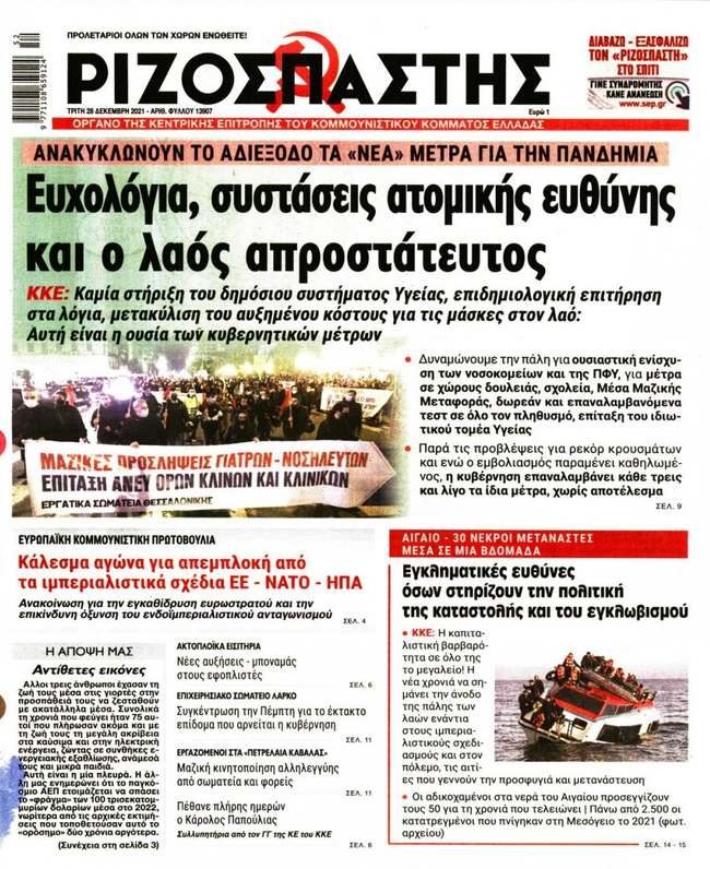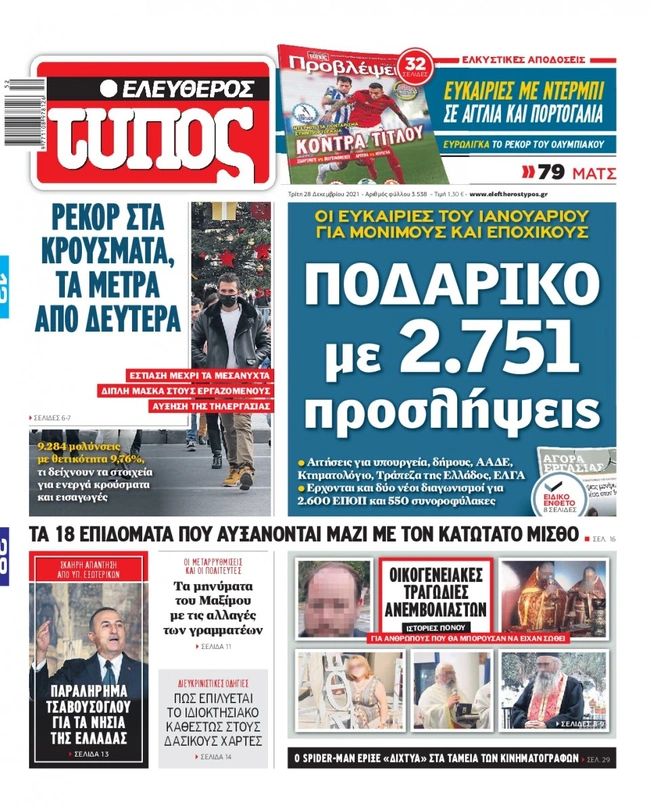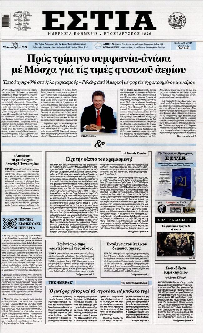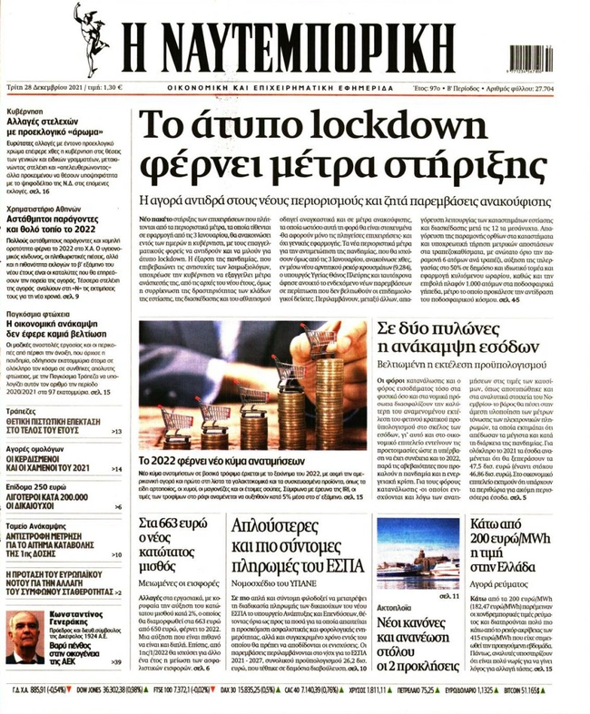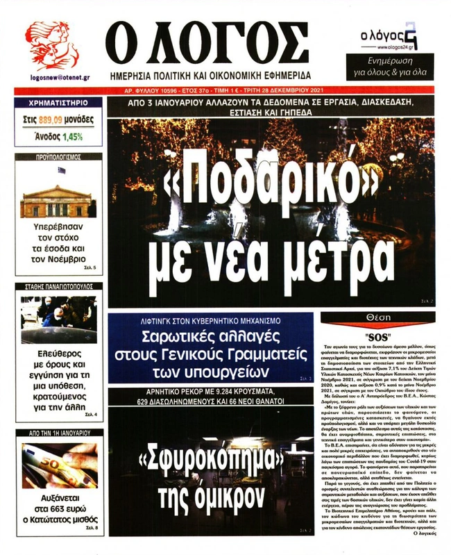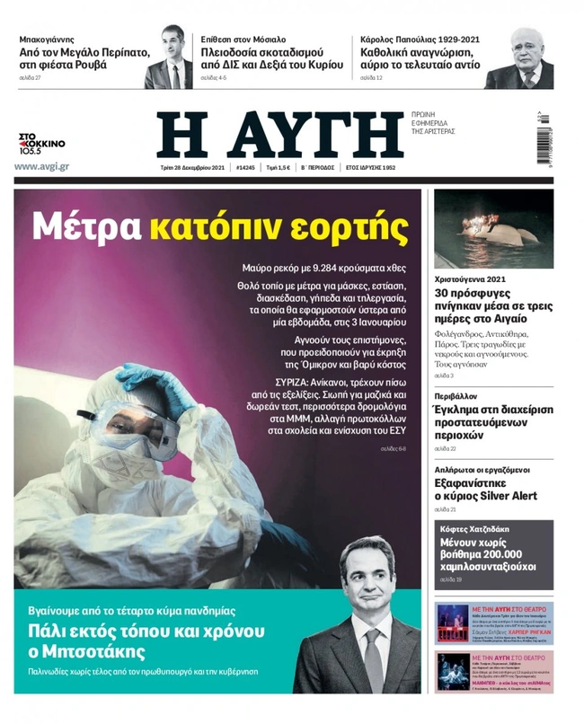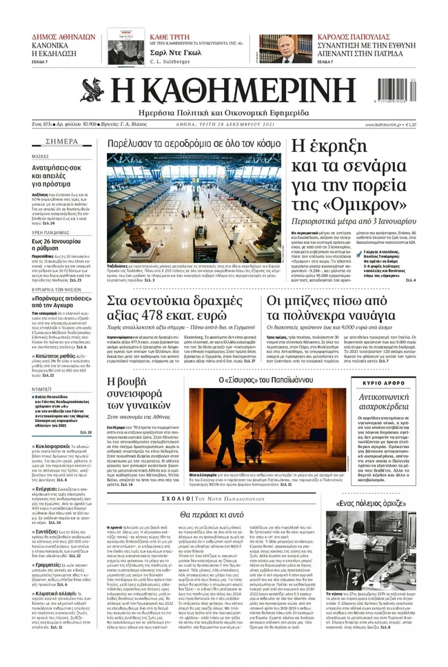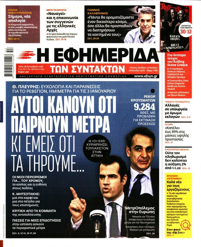 Τα πρωτοσέλιδα των ελληνικών εφημερίδων για σήμερα Τρίτη 28 Δεκεμβρίου. Δείτε τι φιλοξενεί στην πρώτη του σελίδα ο πολιτικός και οικονομικός Τύπος και τα θέματα της επικαιρότητας που ξεχωρίζουν.