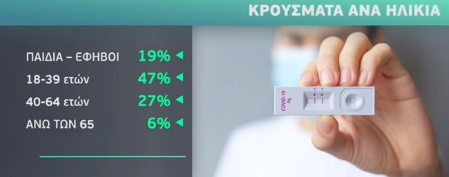 Παράλληλα, εκείνο που προβληματίζει είναι η ηλικιακή κατανομή των νέων κρουσμάτων καθώς σχεδόν τα μισά, ένα ποσοστό στο 47%, εντοπίζεται στις ηλικίες 18 ως και 39 ετών, ενώ το 19% αφορά παιδιά και εφήβους. Αυτό σε συνδυασμό με τη διασπορά της μετάλλαξης Ομικρον κάνε ακόμη πιο επιτακτική την ανάγκη για επίσπευση των μέτρων. Ο φόβος είναι πως το αποτύπωμα αυτής της διασποράς θα φανεί σε περίπου 10 ημέρες στο σύστημα υγείας.