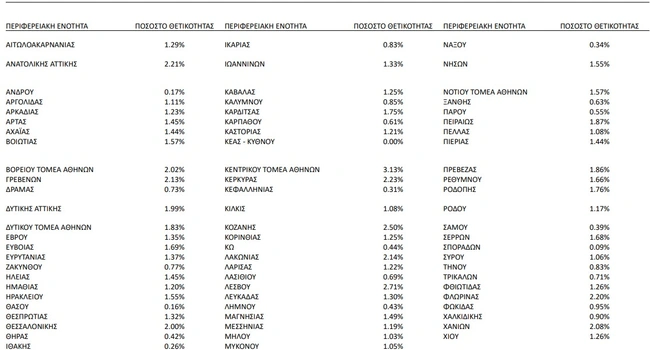 Το υψηλότερο ποσοστό θετικότητα καταγράφεται στον Κεντρικό Τομέα Αθηνών, ενώ ακολουθεί η Λέσβος, η Κοζάνη και η Κέρκυρα. Αναλυτικά τα υψηλότερα ποσοστά θετικότητας: