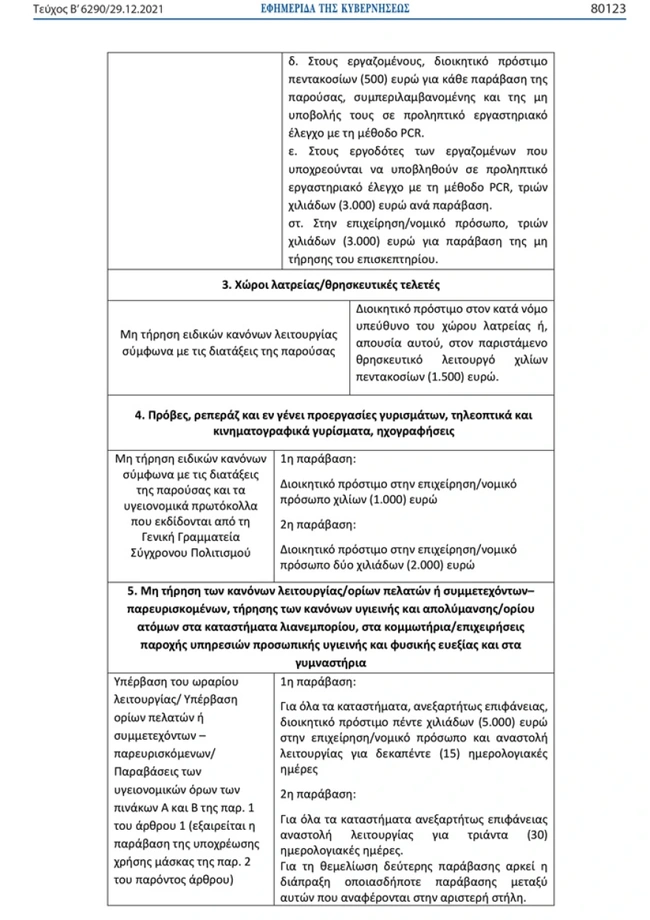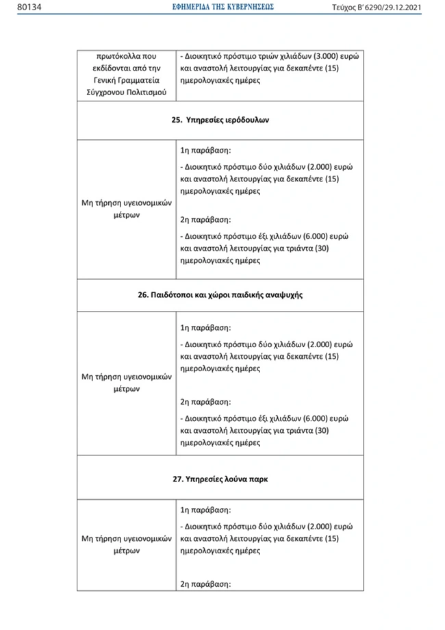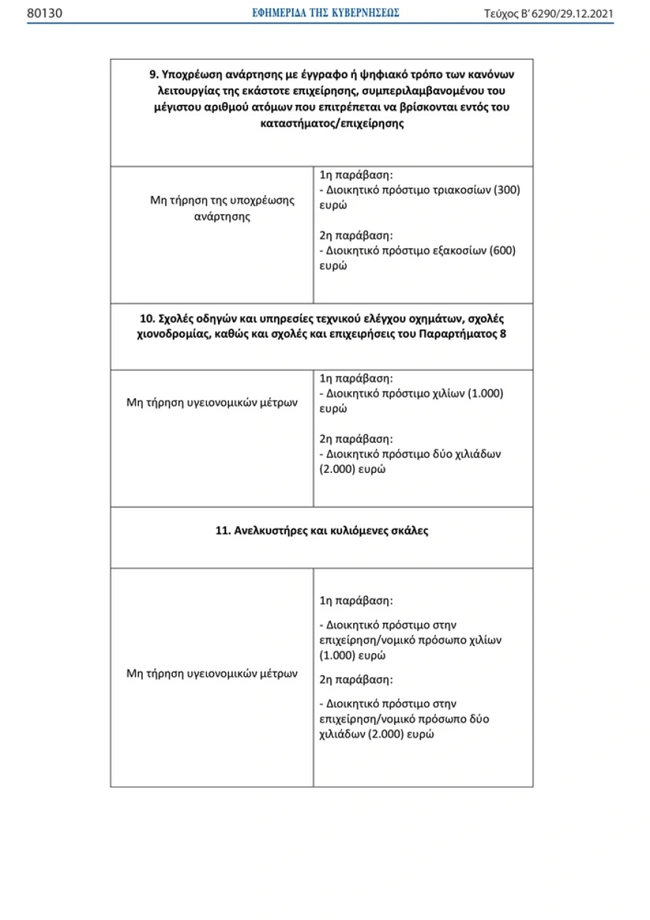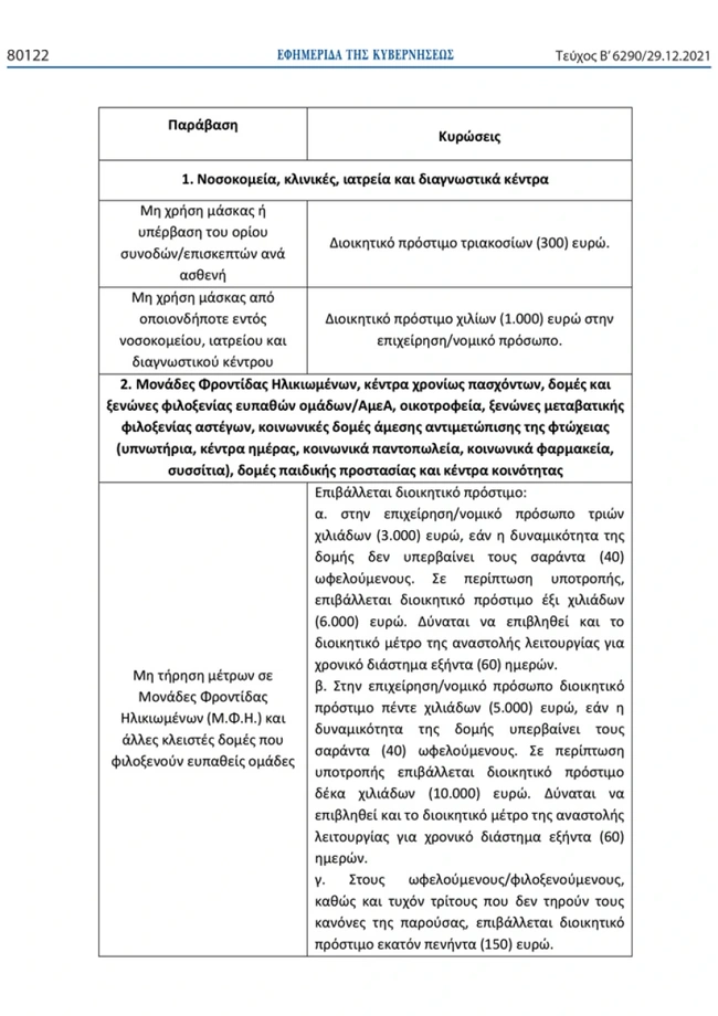 Δείτε αναλυτικά τι πρόστιμα θα κληθούν να καταβάλουν οι παραβάτες σε νοσοκομεία, γηροκομεία, μουσεία, εκκλησίες, γυμναστήρια και επιχειρήσεις εστίασης: