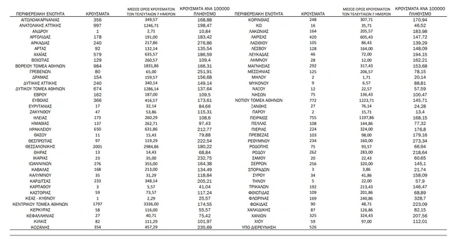 - Κεντρικός τομέας Αθηνών: 1.797 κρούσματα