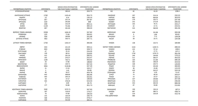 - Κεντρικός τομέας Αθηνών: 3.582 κρούσματα