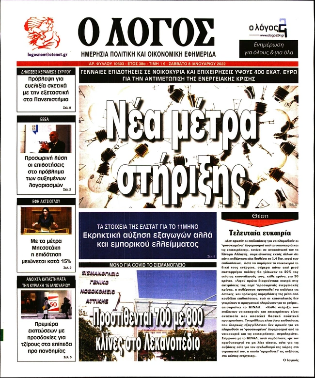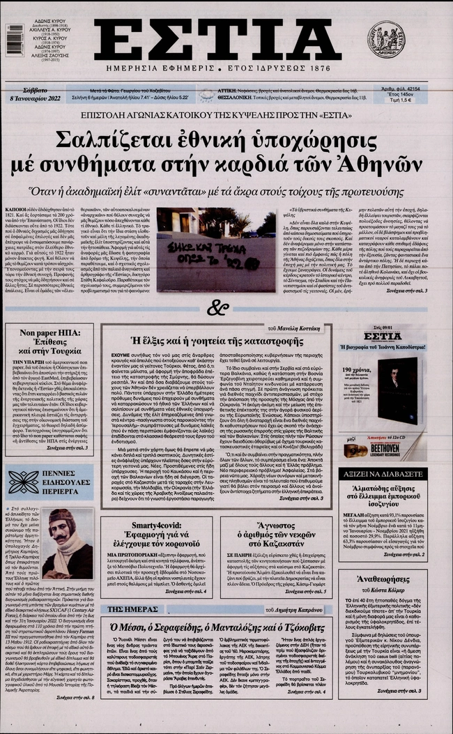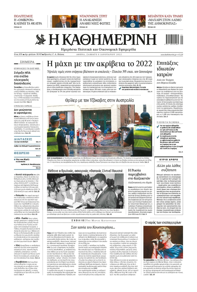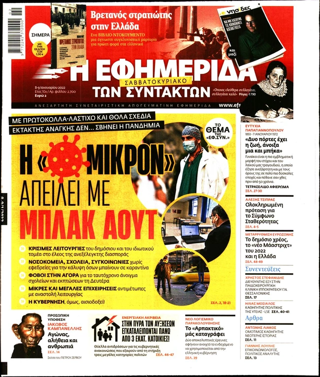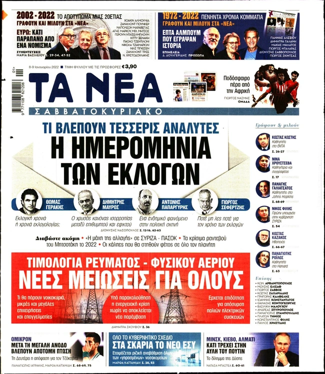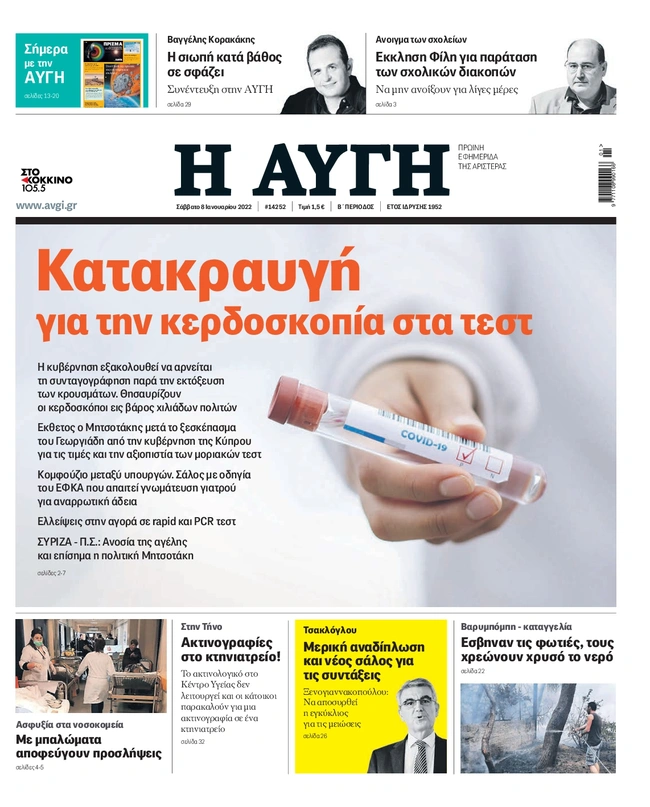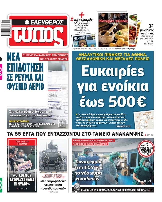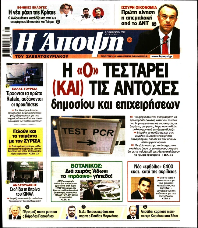 Τα πρωτοσέλιδα των ελληνικών εφημερίδων για σήμερα Σάββατο 8 Ιανουαρίου. Δείτε τι φιλοξενεί στην πρώτη του σελίδα ο πολιτικός και οικονομικός Τύπος και τα θέματα της επικαιρότητας που ξεχωρίζουν.