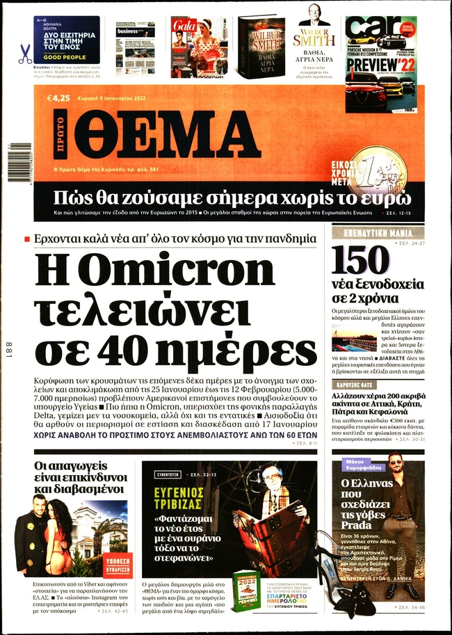 Τα πρωτοσέλιδα των ελληνικών εφημερίδων για σήμερα Σάββατο 8 Ιανουαρίου. Δείτε τι φιλοξενεί στην πρώτη του σελίδα ο πολιτικός και οικονομικός Τύπος και τα θέματα της επικαιρότητας που ξεχωρίζουν.