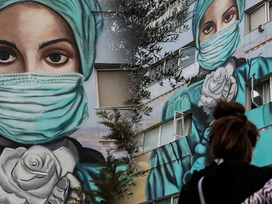 Είναι από τις πιο ευχάριστες εικόνες που αντικρίζουν καθημερινά πολίτες που επισκέπτονται τα νοσοκομεία της χώρας, γεγονός που στα χρόνια της πανδημίας αυξήθηκε κατακόρυφα από τις νοσηλείες για τον κορονοϊό. Στα δύο αυτά χρόνια που η Covid-19 αποτελεί μεγάλο εχθρό της υγείας, στην πρώτη γραμμή της μάχης δεν βρίσκονται άλλοι από τους γιατρούς και τους νοσηλευτές. Ετσι, στο Τζάνειο νοσοκομείο στον Πειραιά, υπάρχει πλέον ένα τεράστιο γκράφιτι που απεικονίζει το πρόσωπο μιας υγειονομικού με καλυμμένο το πρόσωπό της από τη μάσκα, ενώ κρατάει στα χέρια της ένα λευκό τριαντάφυλλο.