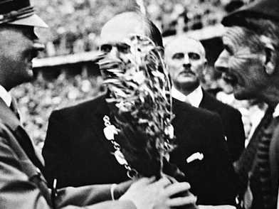 Αυτό ακριβώς έγινε και όταν τον κάλεσε ο Αδόλφος Χίτλερ να συμμετάσχει στην τελετή έναρξης των Ολυμπιακών Αγώνων του Βερολίνου το 1936! Ο ηγέτης της ναζιστικής Γερμανίας τον ήθελε εκεί ως σύμβολο των πρώτων σύγχρονων Ολυμπιακών Αγώνων. Κατά τη διάρκεια της τελετής, μάλιστα, οι δυο τους συναντήθηκαν μπροστά από την εξέδρα των επισήμων με τον Λουή να μη χαιρετά ναζιστικά τον αρχηγό του Γ' Ράιχ αλλά να του δίνει ένα κλαδί ελιάς σαν σύμβολο ειρήνης!