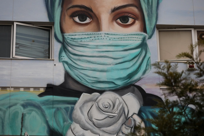 Έργα σαν και αυτό υπάρχουν και σε άλλα νοσοκομεία της χώρας, όπως στο ΑΧΕΠΑ της Θεσσαλονίκης, όπου μια μεγάλη τοιχογραφία στην πρόσοψη απεικονίζει έναν καταπονημένο νοσηλευτή με μάσκα και ακριβώς δίπλα υπάρχει το μήνυμα «Σας ευχαριστούμε».